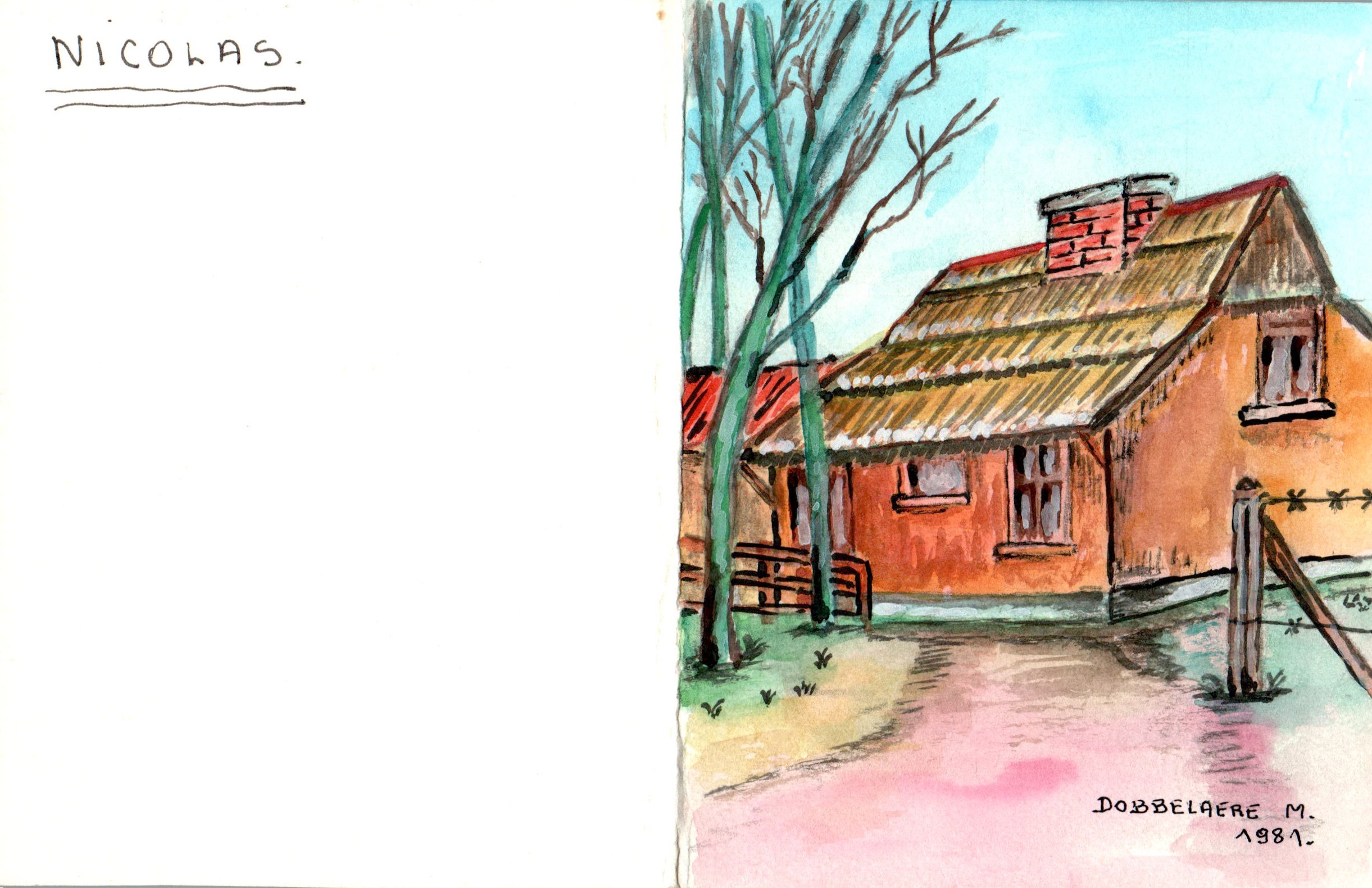 De gevouwen berichtenkaart met als signatuur M. Dobbelaere heeft bevat een apart papieren inlegvel bij wijze van extra schrijfruimte.