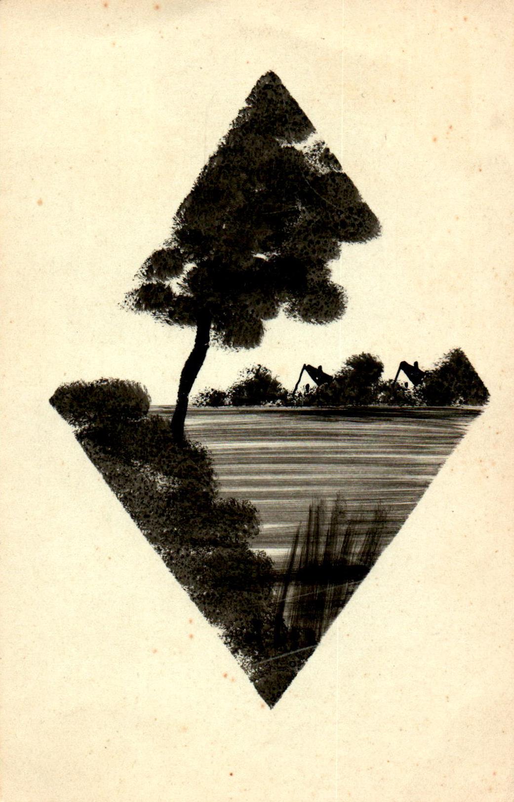 Deze kaart bevat een illustratie aan de schoonzijde ‘in een ruit’
