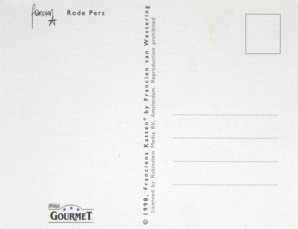 Reclamekaart voor kattenvoer (merk: Friskies).