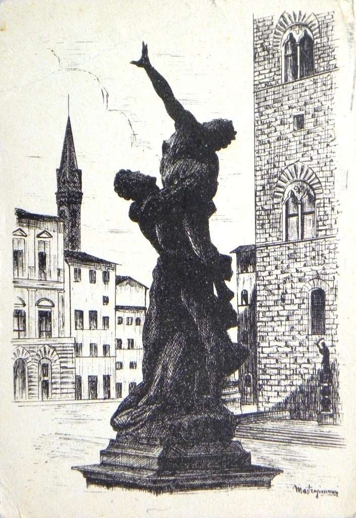 Van vele kunstenaars worden voortdurend – in dit geval van de beeldhouwer Giambologna – kunstwerken verspreid middels ansichtkaarten. De uitgever van deze ansichtkaart is N.PG., Florence (zie ook de eerste en tweede foto, nr. 105). Het origineel bevindt zich als onderdeel van de beeldengalerij op de Plaza della Signoria in Florence.