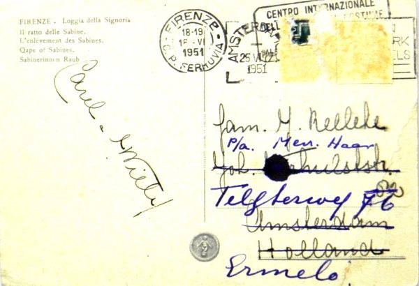 Daarnaast heeft een voor ons onbekende tekenaar (Mastragiarenni?) ook dit wereldberoemde beeld vastgelegd. Zie bijgevoegde kaart [COL 1293.001b (10.3 x 15)].