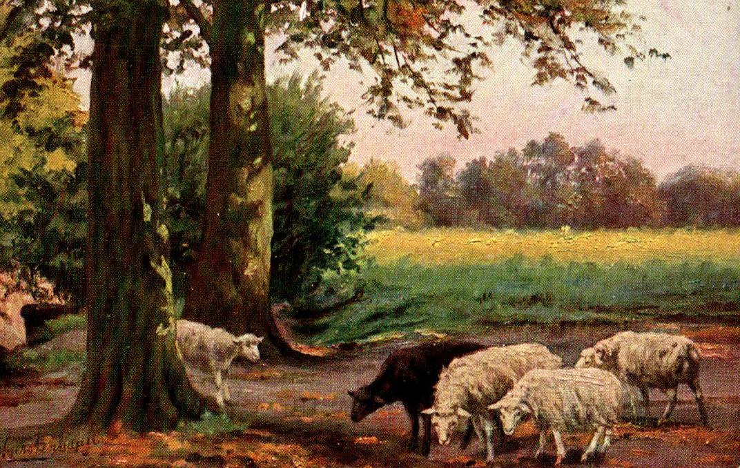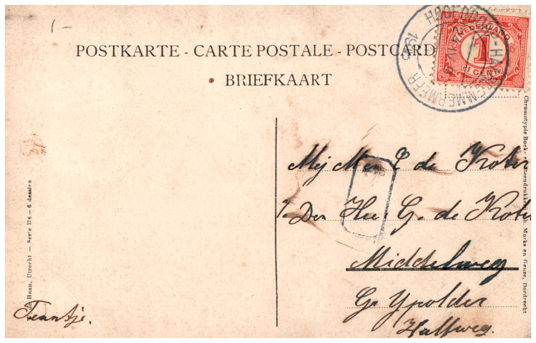 N.b.: niet gelopen maar wel vettige vlekken op keerzijde en een gelopen briefkaart.