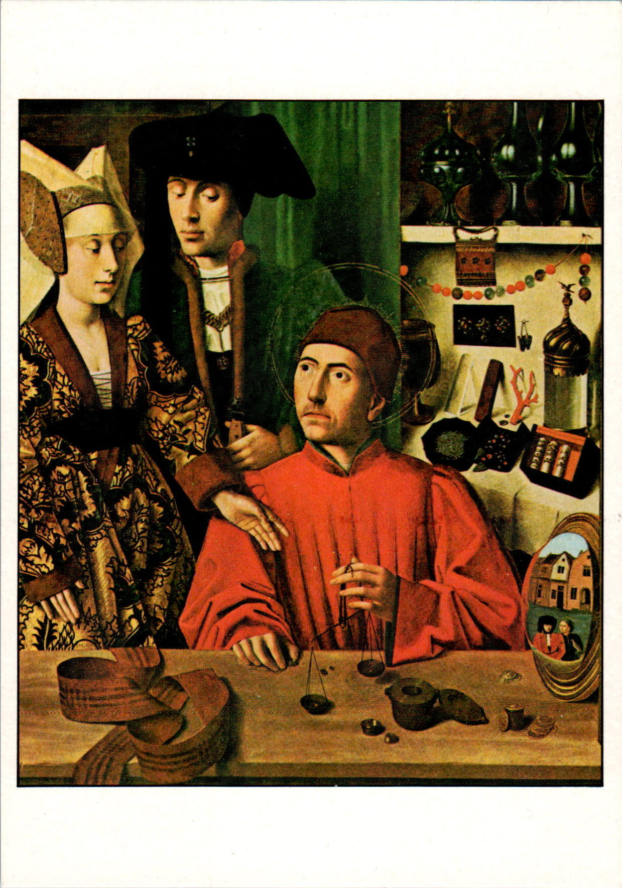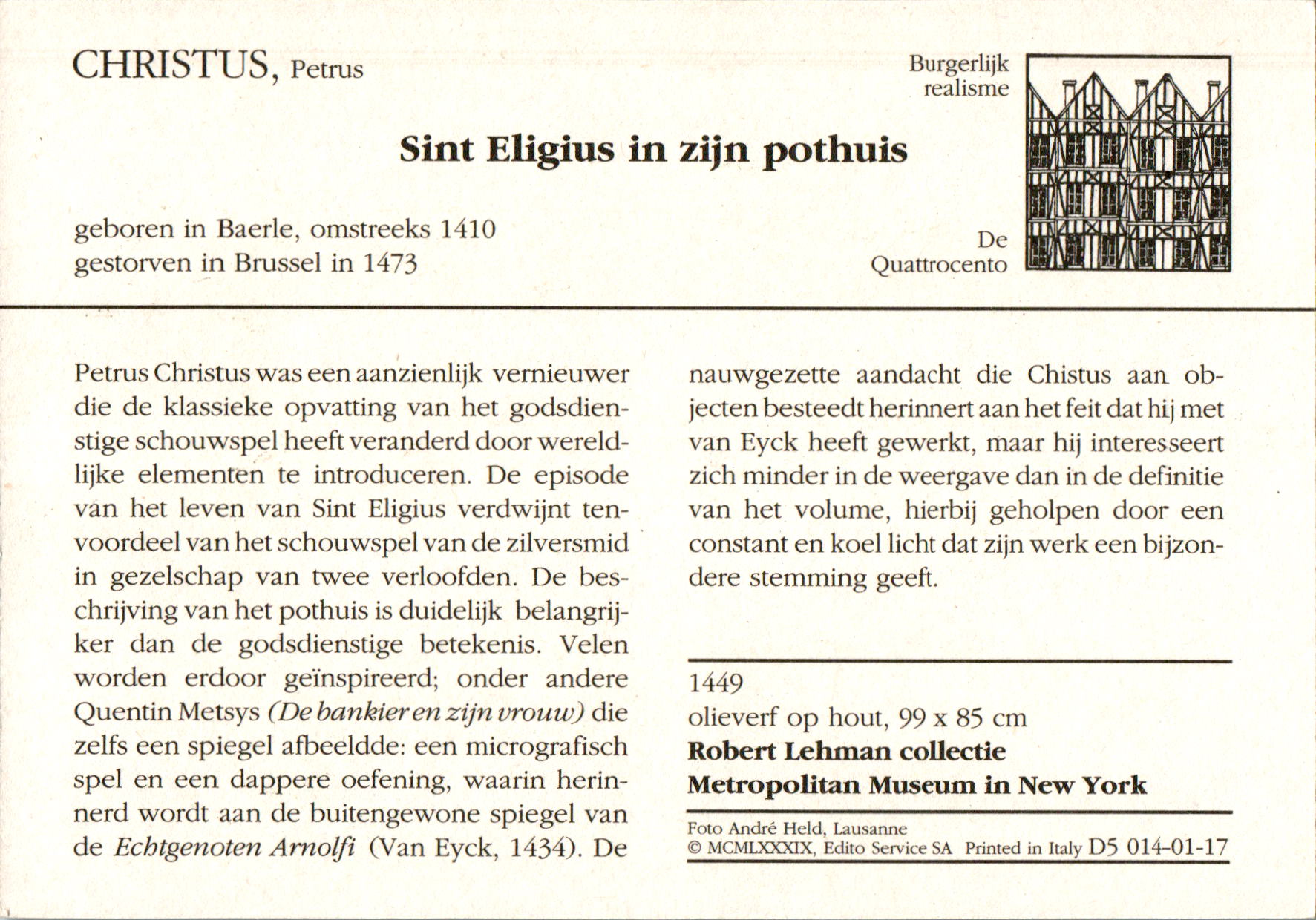 “Sint Eligius in zijn pothuis” verwijst naar een bekende voorstelling uit de middeleeuwse en vroegmoderne kunst [Sint Eligius (ook wel Sint Elooi) was de patroonheilige van smeden, goudsmeden en metaalbewerkers].