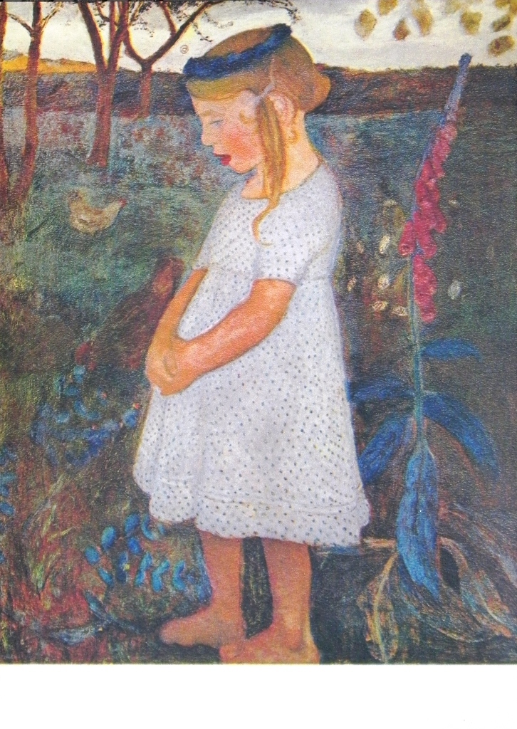 Van meerdere kunstenaars worden voortdurend – in dit geval van de al een eeuw geleden overleden schilderes Paula Modersohn-Becker – kunstwerken verspreid via (na)drukken of zoals in dit geval middels ansichtkaarten. Deze werd uitgegeven door Verlag Haus am Weyerberg, Worpswedde (zie ook de tweede foto, nr. 79). Een terecht initiatief want dit werk draagt een liefdevolle boodschap met zich mee. Het origineel zich bevindt in de Sammlung Böttcherstrasse, Bremen.