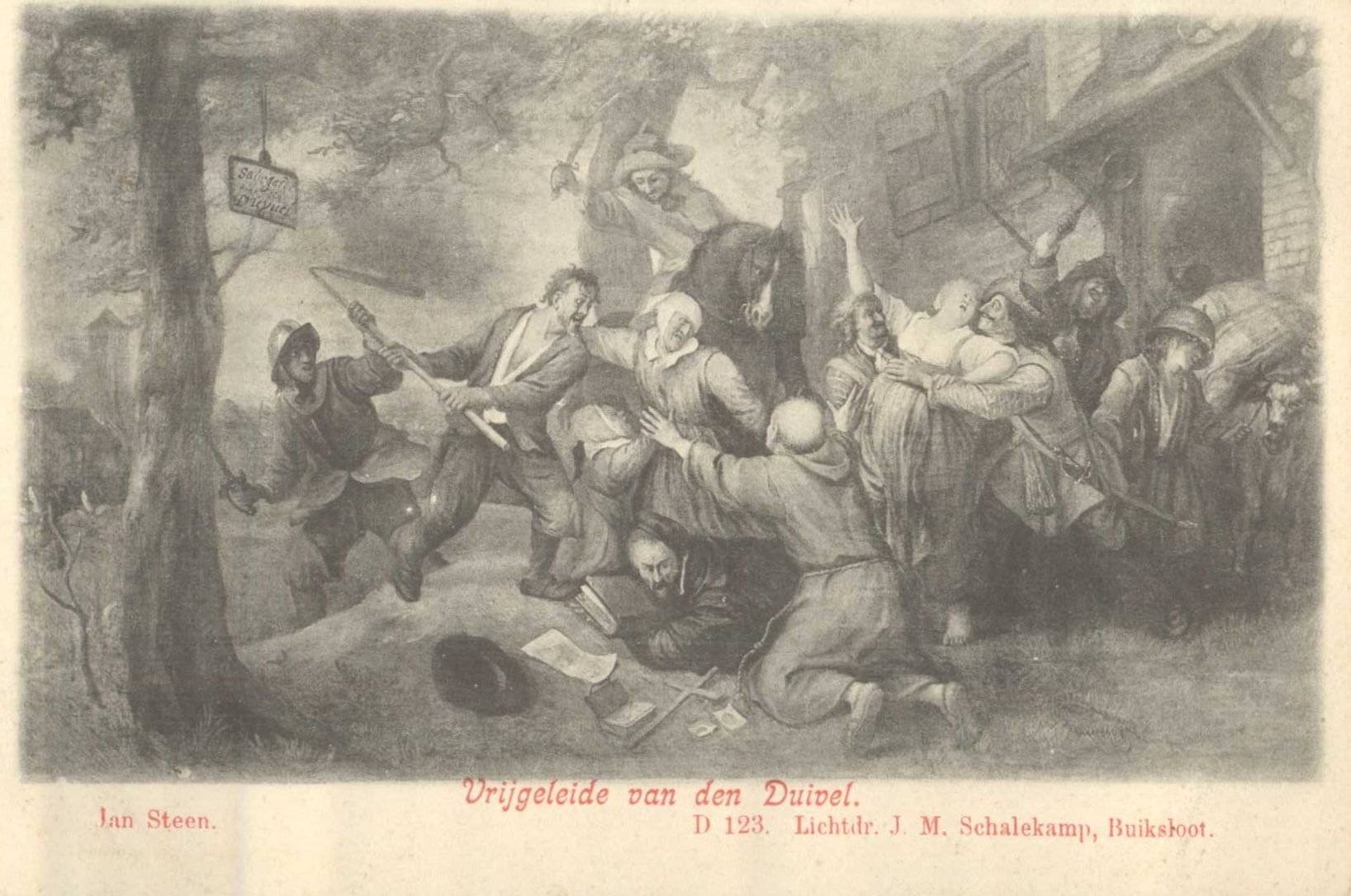 Jan Steen (naamvariant: Jan Havicksz. Steen; signeerde vaak als JSteen of JenS; monogrammeerde als JS of IS) werd in 1625 of 1626 in Leiden geboren en overleed daar ook op 1 of 2 februari 1679. Jan Steen trouwde in 1649 met de dochter van Jan van Gooyen (Margareth); hij was de zwager van Jacques de Claeuw. Jan Steen volgde schilderlessen bij zowel Jan van Gooyen als bij Nicolaes Knüpfer en Adriaan van Ostade. Cornelis en Thadeus Steen werden weer opgeleid door Jan Steen zelf. Als kunste...
