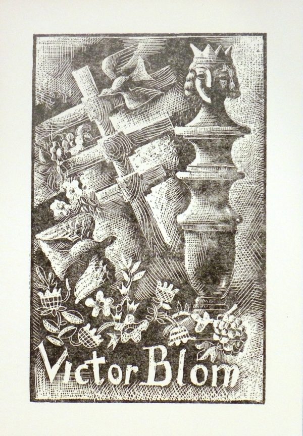 Onduidelijk wie deze persoon is. Het vermoeden bestaat dat het een klassiek werkje is van de Belgische tekenaar van vooral abstract werk ‘Victor Blom’. Maar dit is geenszins zeker. Ook is onduidelijk welke functie deze kleingrafiek ooit werd toebedeeld (ex libris, felicitatie-, aantekenkaart?) voor hemzelf of eerder als voorbeeld voor potentiële klanten?