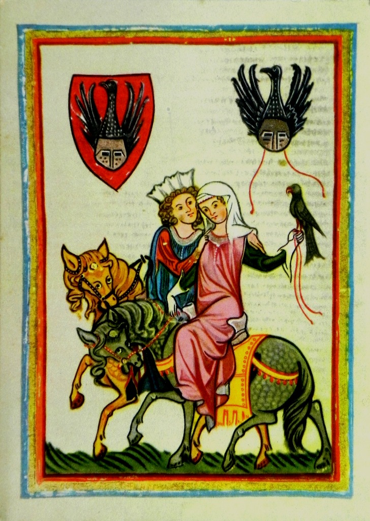 Deze afbeelding is een beroemde miniatuur uit de Codex Manesse (ca. 1300-1340) en één van de belangrijkste verzamelingen van middeleeuwse’, Duitse liederen.