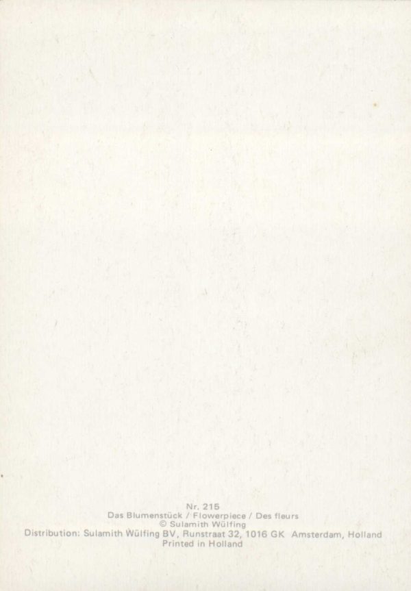 Sulamith Wülfing werd op 11 januari 1901 in Eberfelt bij Wuppertal geboren en overleed in 1989. Zij volgde een kunstzinnige opleiding aan de kunstacademie in Wuppertal en volgde les bij Max Bernuth. We weten dat ze afkomstig uit een diepgelovige familie als zelfverklaarde theologe door het leven ging. Haar ongebruikelijke voornaam Sulamith ( = de geliefde van Salomo) werd haar gegeven door haar vader. Samen met haar latere man Otto Schulze- die ook kunstenaar was - richtte zijn de uitgeverij ...