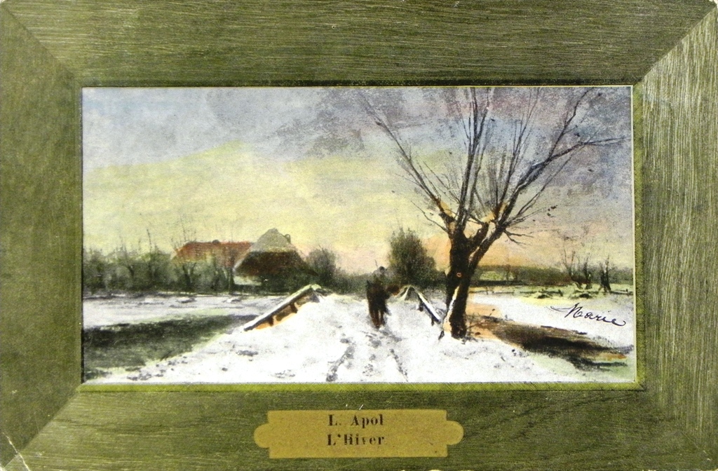 Van legio [(minder) bekende en (minder) gevierde] kunstenaars werden kunstwerken als basis gebruikt om – in dit geval van Louis Apol – ansichtkaarten te maken. Voor Caput Ovis reden genoeg om ook aan de eigen collectie voorbeelden van deze vormen van ‘commerciële’ kunst toe te voegen.