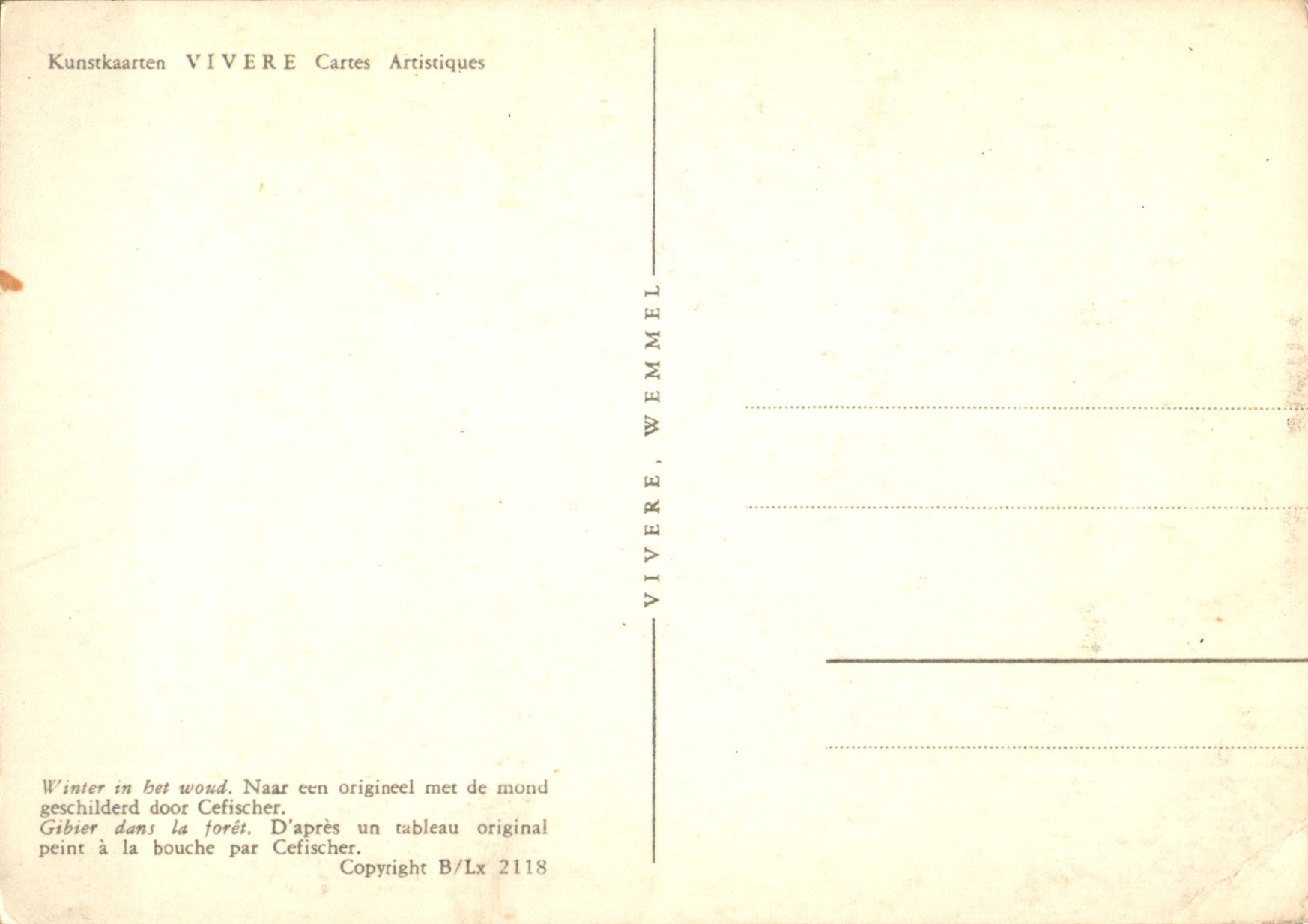 Carl Ernst Fischer (naamvariant: Cefischer) werd op 7 maart 1900 in Frankfurt am Main geboren en overleed daar ook op 29 april 1974. Hij doorliep een Kunstnijverheidsschool en was tot aan de Tweede Wereldoorlog dan ook actief als illustrator van beeldverhalen en (kinder)boeken. Hij verloor in een trein door een luchtaanval in de oorlog zijn beide armen. De rest van zijn leven probeerde hij als mondschilder toch toe te geven aan zijn eigen creativiteitsbehoefte. Zijn meest bekende werk v...