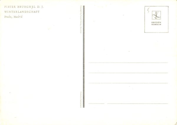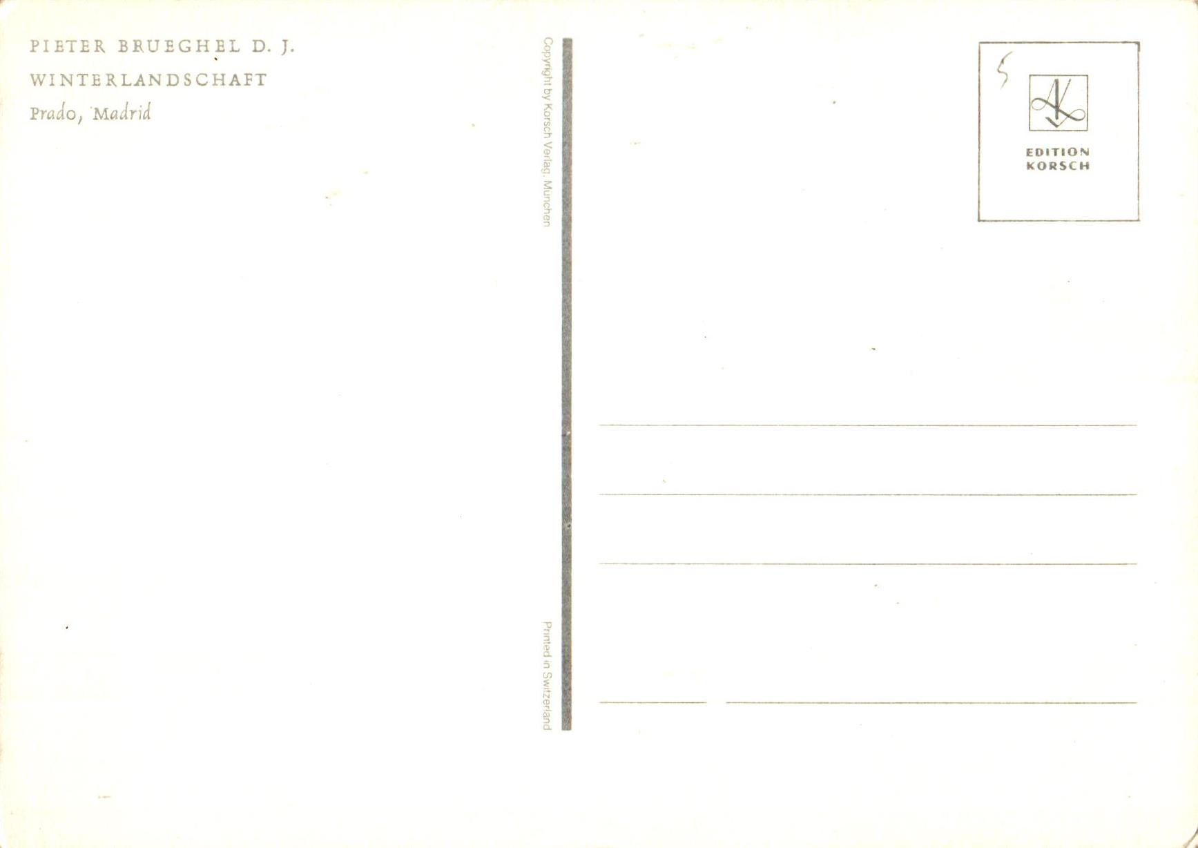 Twee ansichtkaarten (waarvan er één in détail) van het werk ‘Winterlandschap’van Brueghel.