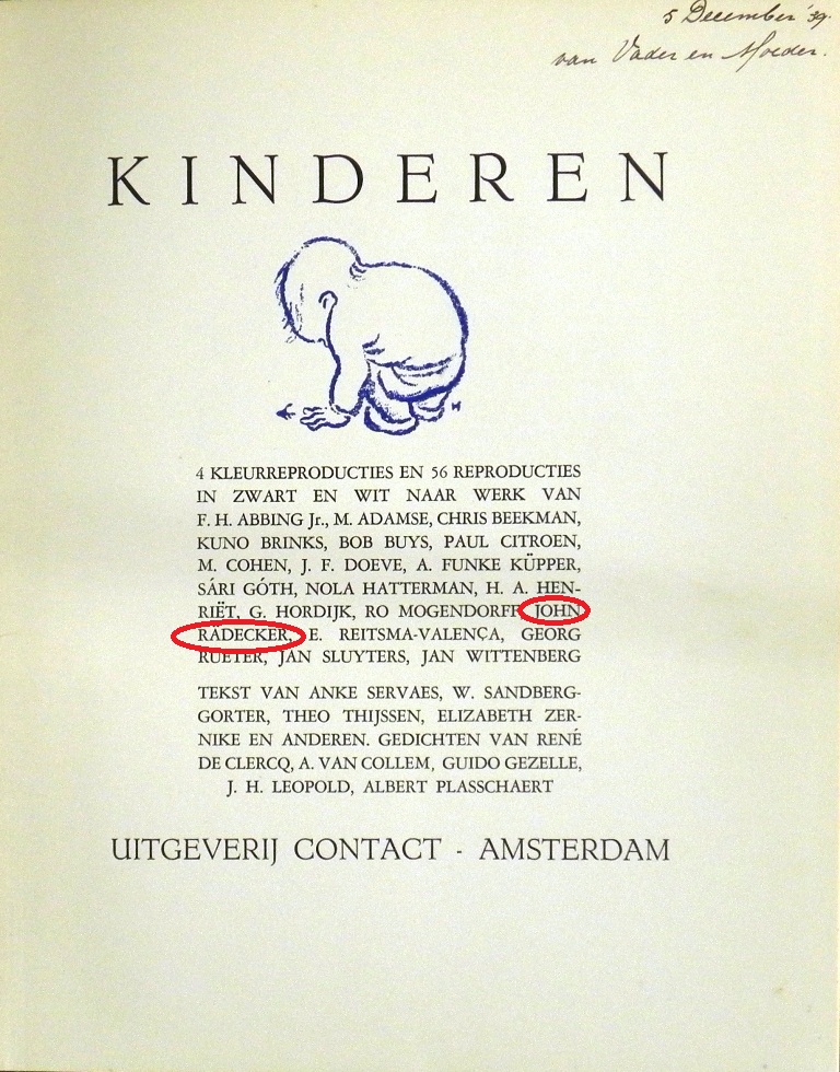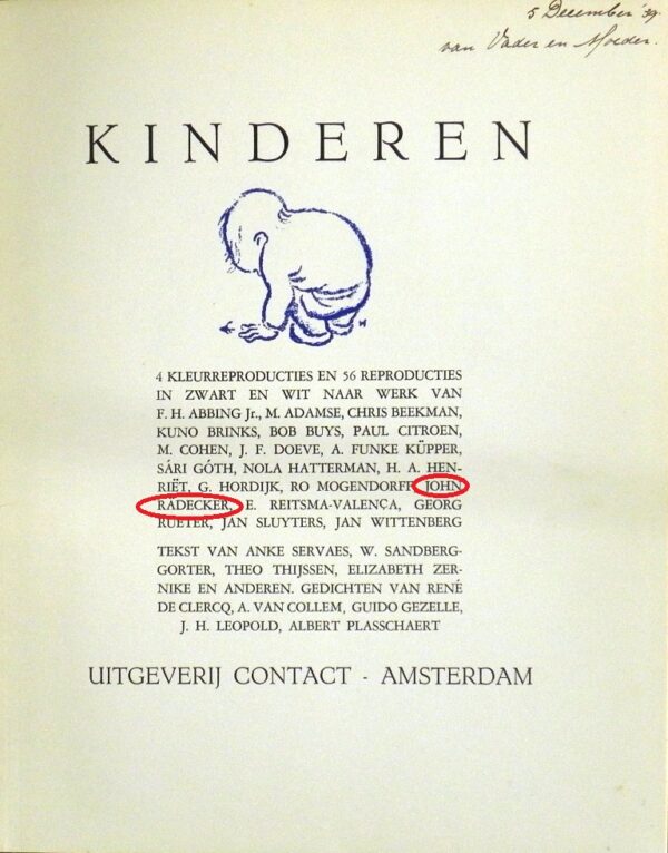 Eén van de fraaiste ooit uitgegeven (al voor de Tweede Wereldoorlog in 1938) boeken over kindertekeningen werd verzorgd (en door Hendricus Antonius Henriët geïllustreerd) door Uitgeverij Contact uit Amsterdam. Omdat 19 kunstenaars in deze uitgave zijn vertegenwoordigd, besloten wij om alle kunstenaars een ‘eigen’ plek (inclusief kopieën van hun tekeningen / schetsen) te geven in de Caput Ovis-verzameling (zie voor het overzicht zoals vermeld bij ‘Bibliotheek ‘Kinderen’, BI 998.226).